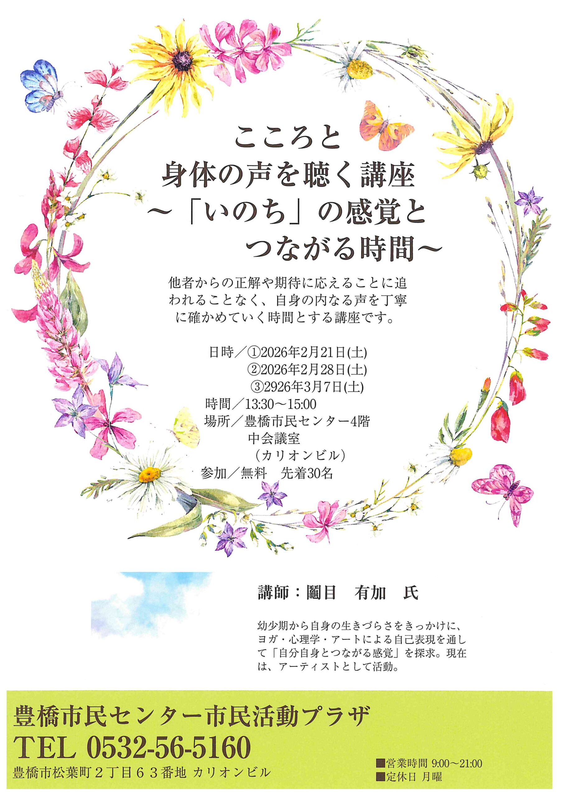 ご質問等ございましたら豊橋市民センターへ